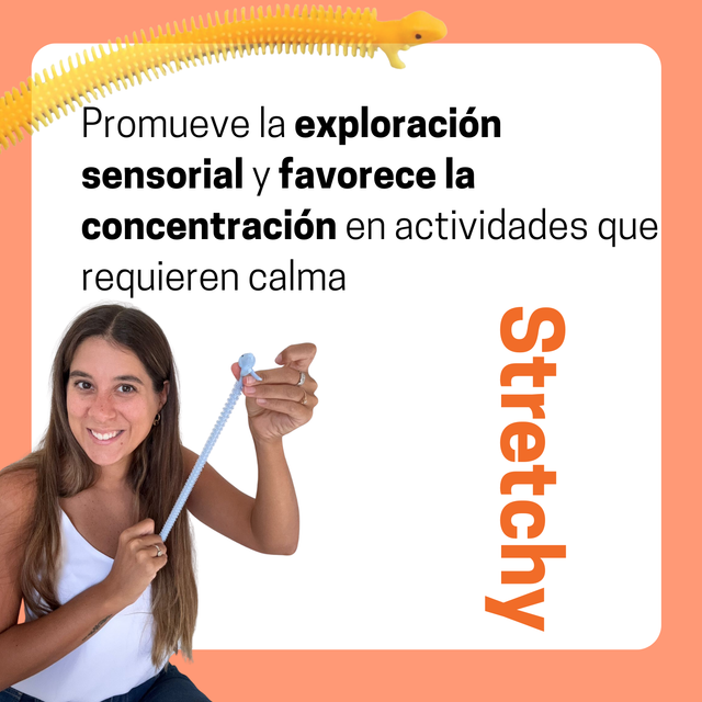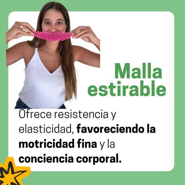 Ofrece resistencia y elasticidad, favoreciendo la motricidad fina y la conciencia corporal. Excelente para niños que buscan estímulos propioceptivos a través de la manipulación.