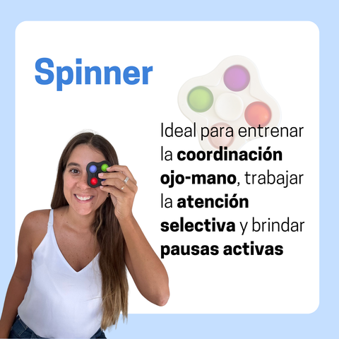 Combina movimiento giratorio y estimulación táctil. Ideal para entrenar la coordinación ojo-mano, trabajar la atención selectiva y brindar pausas activas.
